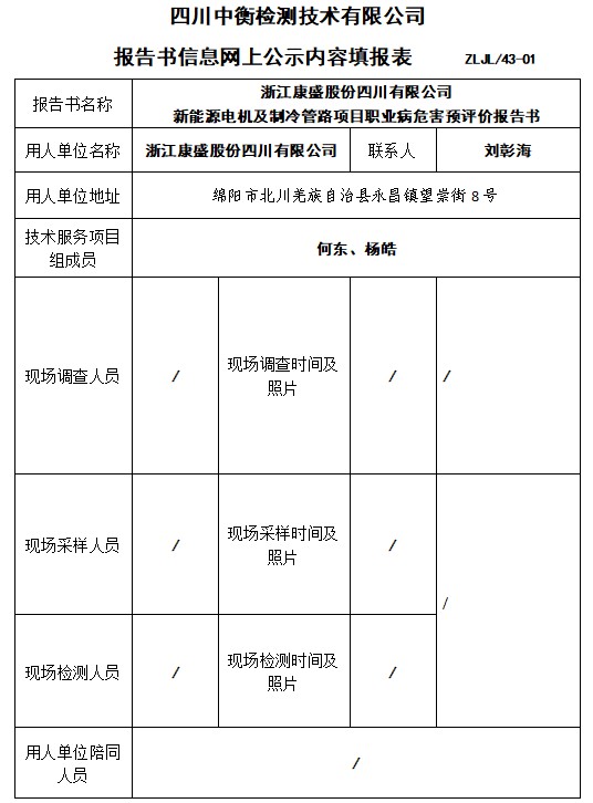 浙江康盛股份四川有限公司 新能源電機(jī)及制冷管路項(xiàng)目職業(yè)病危害預(yù)評(píng)價(jià)報(bào)告書(shū)