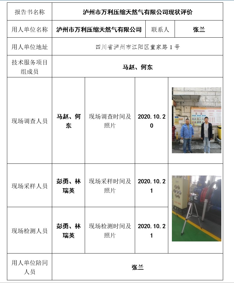 瀘州市萬利壓縮天然氣有限公司現(xiàn)狀評(píng)價(jià)