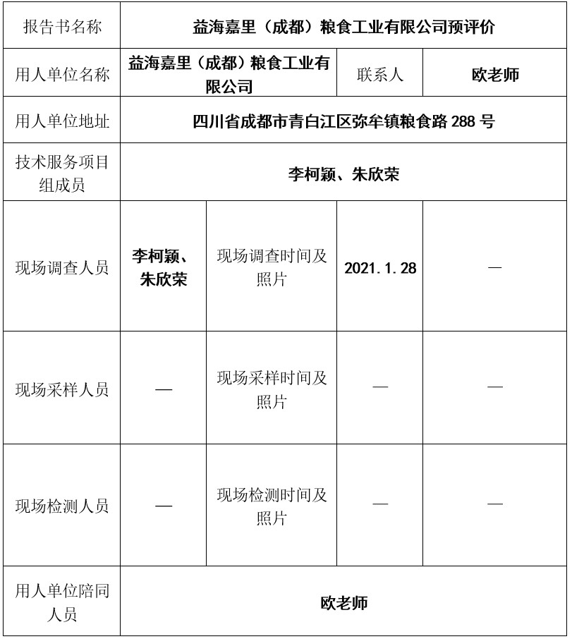 益海嘉里(成都)糧食工業(yè)有限公司預(yù)評(píng)價(jià)