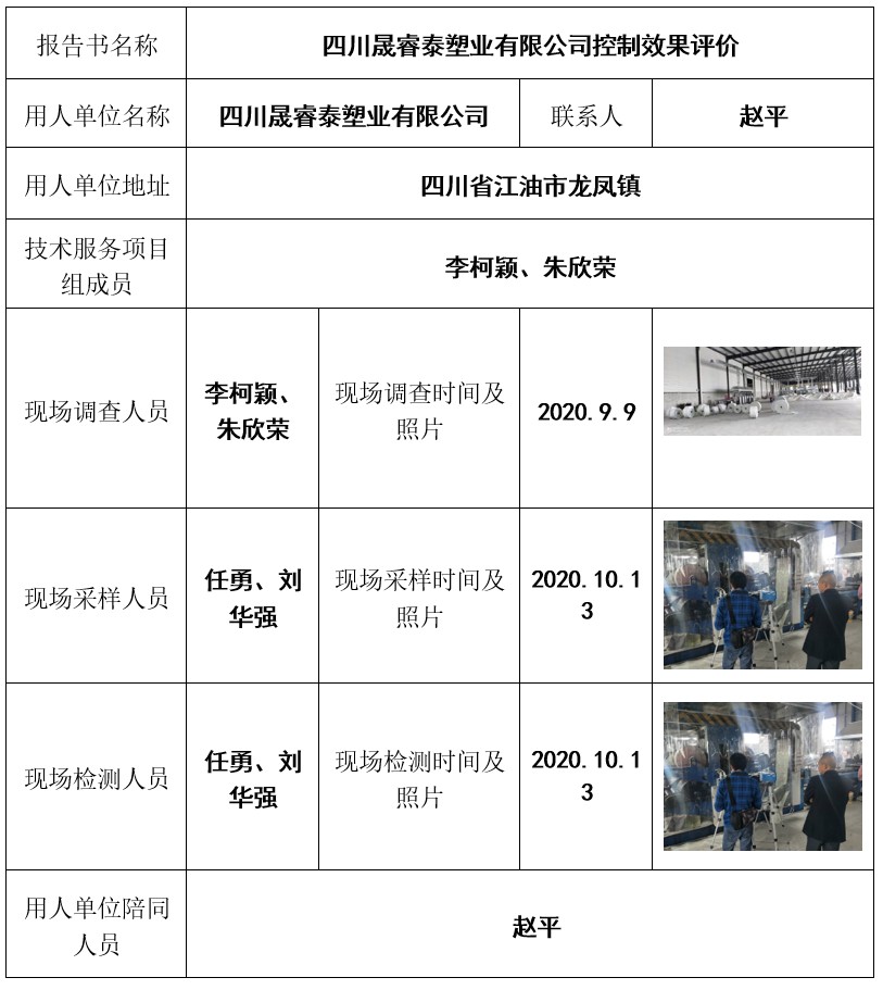 四川晟睿泰塑業(yè)有限公司控制效果評(píng)價(jià)