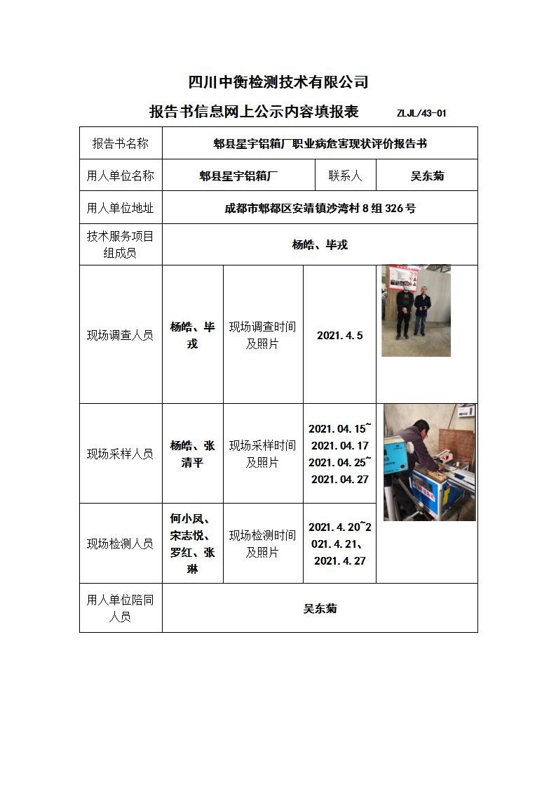 郫縣星宇鋁箱廠職業(yè)病危害現(xiàn)狀評價