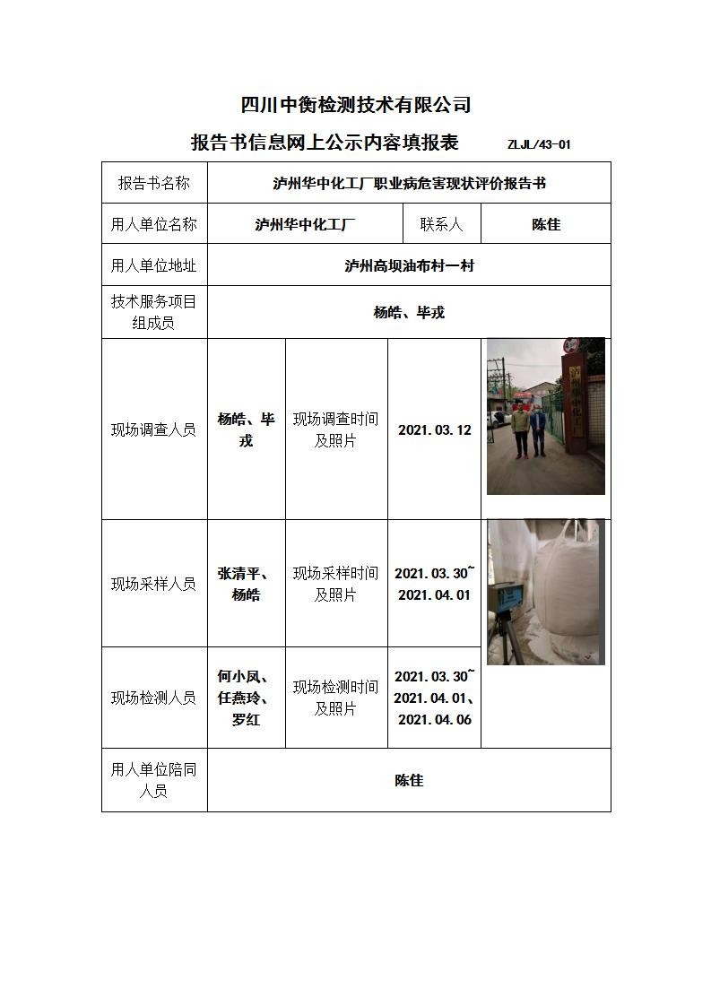 瀘州華中化工廠職業(yè)病危害現(xiàn)狀評(píng)價(jià)