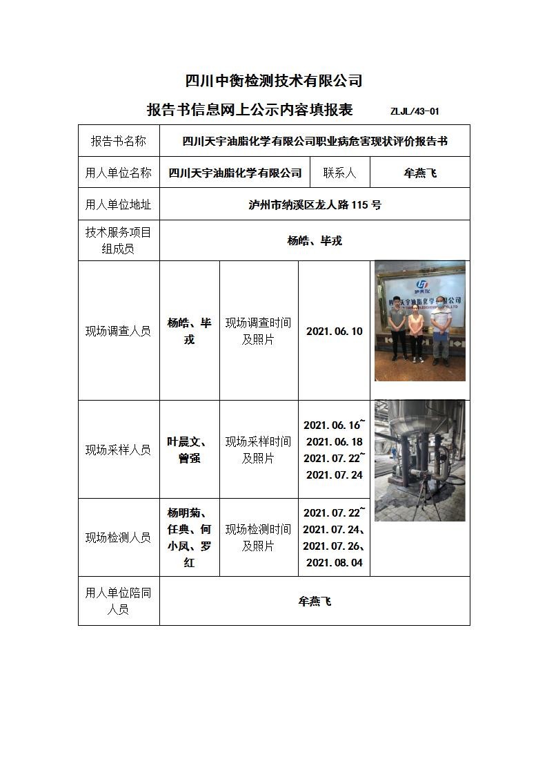 四川天宇油脂化學(xué)有限公司職業(yè)病危害現(xiàn)狀評(píng)價(jià)