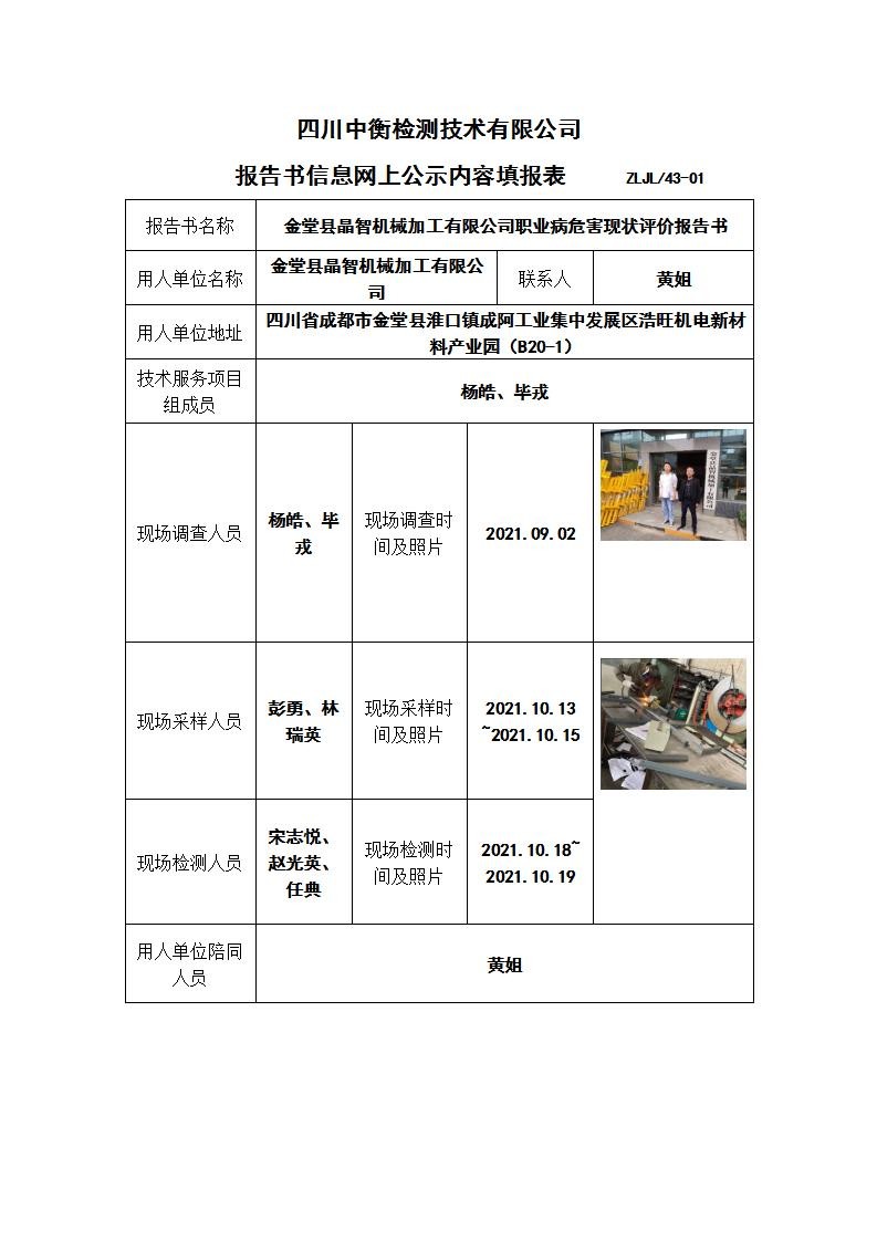 金堂縣晶智機(jī)械加工有限公司職業(yè)病危害現(xiàn)狀評價
