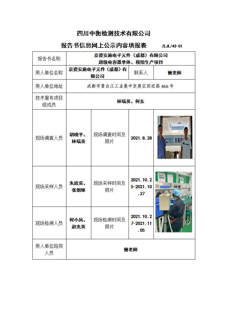 京瓷安施電子元件(成都)有限公司 超級電容器單體、模組生產(chǎn)項目