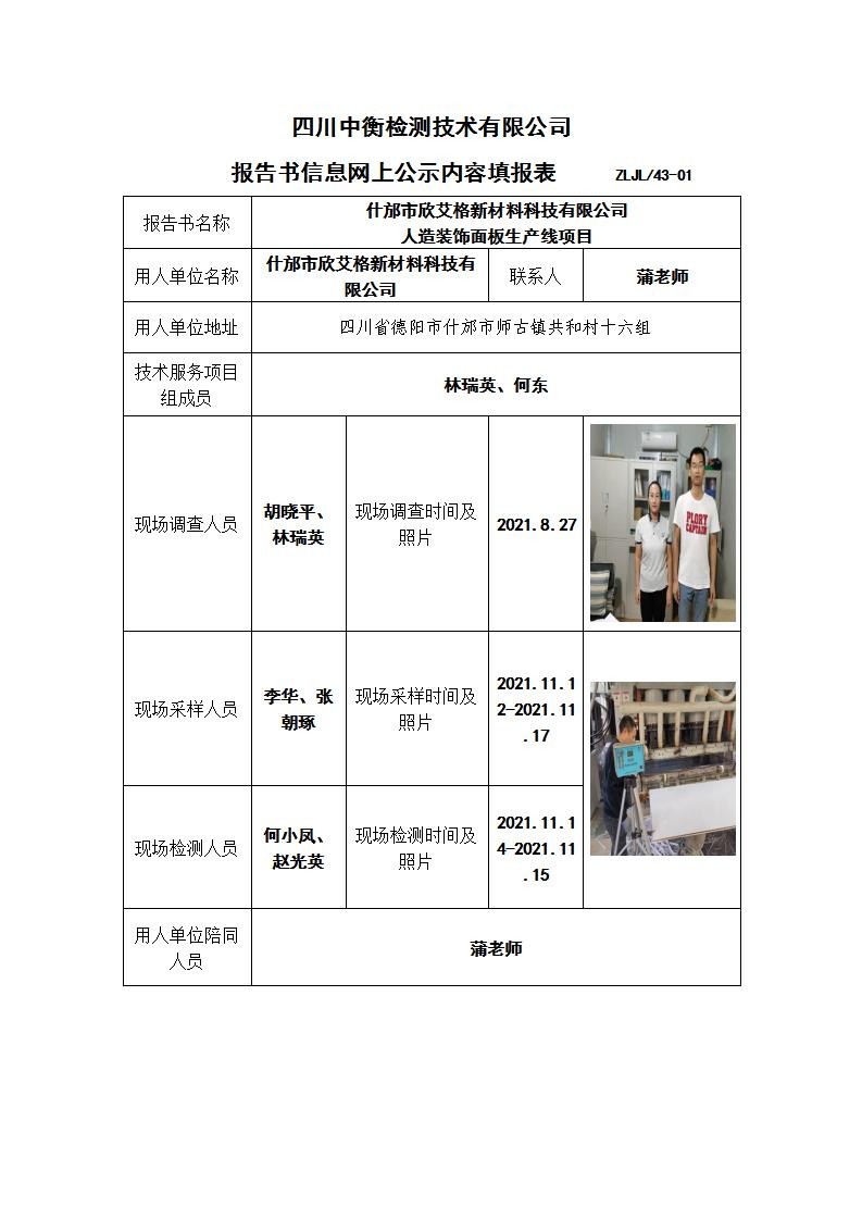 什邡市欣艾格新材料科技有限公司 人造裝飾面板生產(chǎn)線項(xiàng)目
