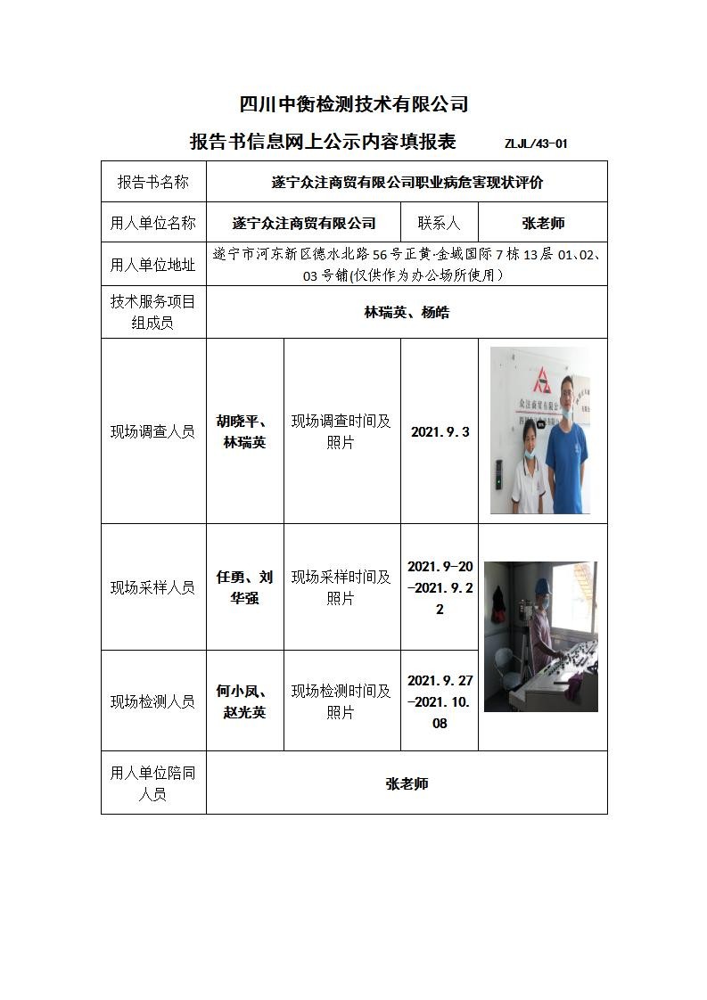 遂寧眾注商貿(mào)有限公司職業(yè)病危害現(xiàn)狀評(píng)價(jià)
