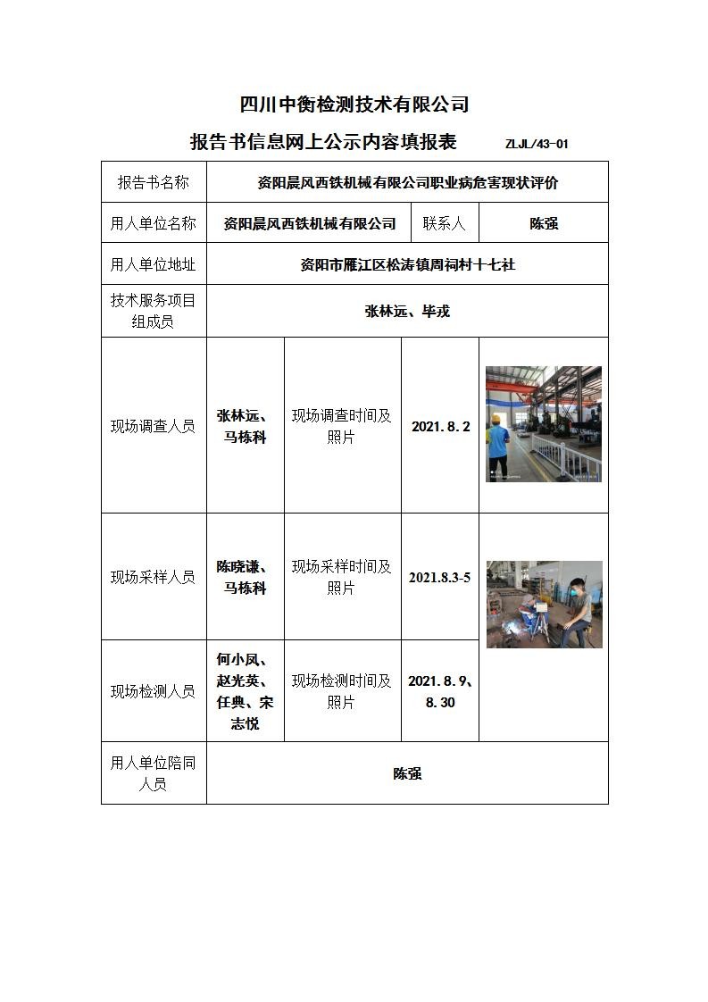資陽(yáng)晨風(fēng)西鐵機(jī)械有限公司職業(yè)病危害現(xiàn)狀評(píng)價(jià)