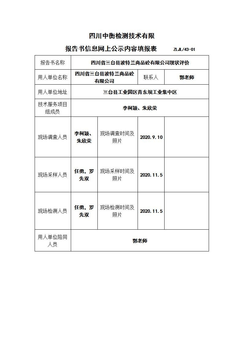 四川省三臺縣波特蘭商品砼有限公司現狀評價