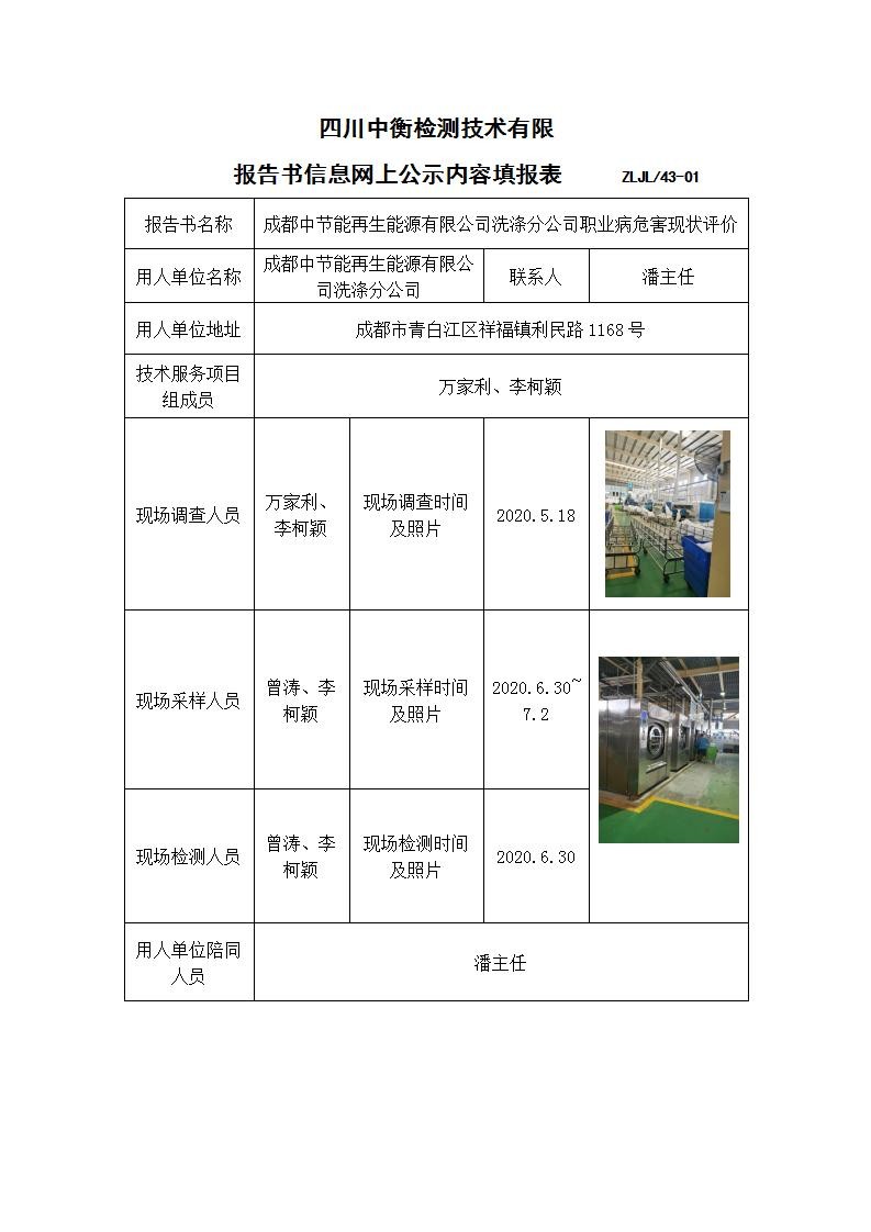 成都中節(jié)能再生能源有限公司洗滌分公司職業(yè)病危害現(xiàn)狀評價