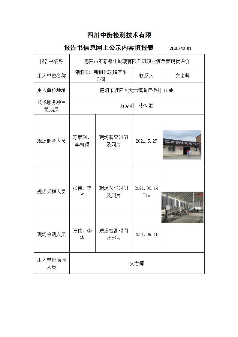 德陽市匯新鋼化玻璃有限公司職業(yè)病危害現(xiàn)狀評(píng)價(jià)