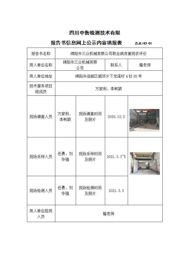 綿陽市三眾機械有限公司職業(yè)病危害現(xiàn)狀評價