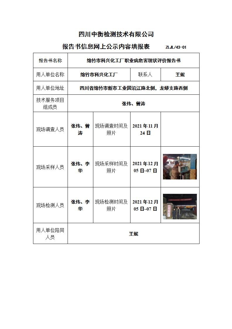 綿竹市科興化工廠職業(yè)病危害現(xiàn)狀評價報告書