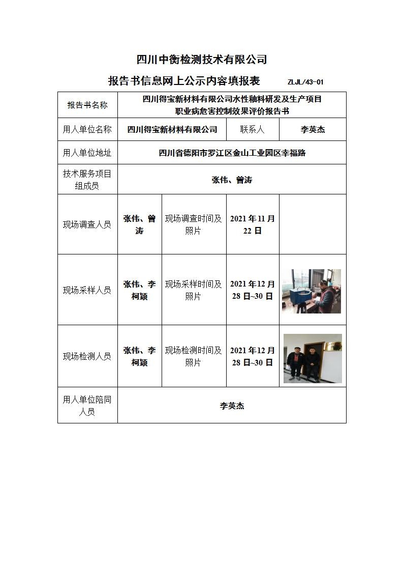 四川得寶新材料有限公司水性釉料研發(fā)及生產(chǎn)項目 職業(yè)病危害控制效果評價