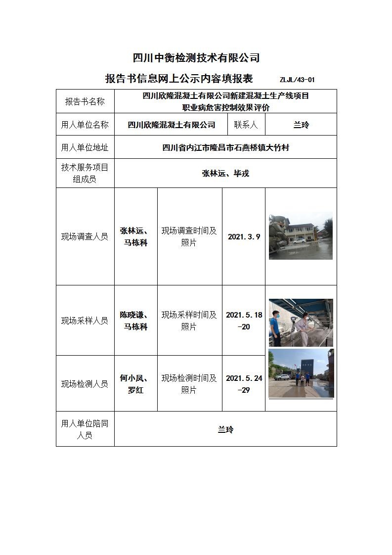 四川欣隆混凝土有限公司新建混凝土生產(chǎn)線項目 職業(yè)病危害控制效果評價