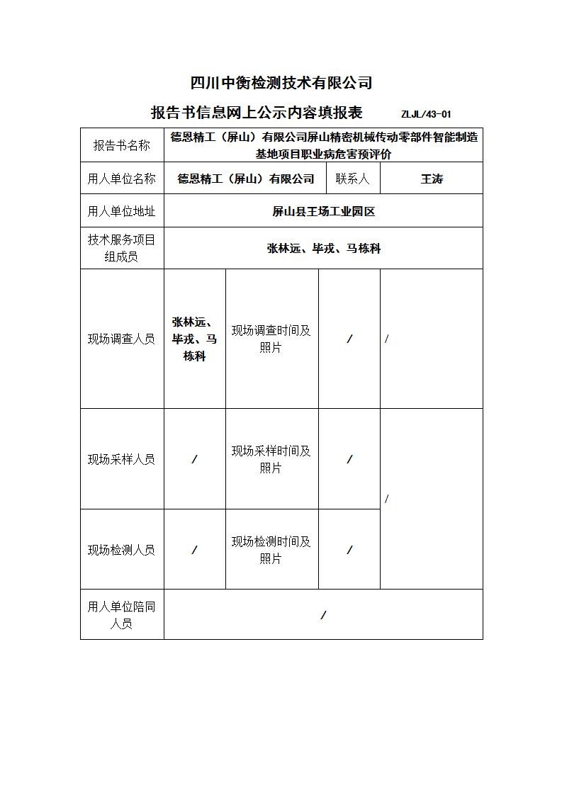 德恩精工(屏山)有限公司屏山精密機(jī)械傳動(dòng)零部件智能制造基地項(xiàng)目職業(yè)病危害預(yù)評(píng)價(jià)