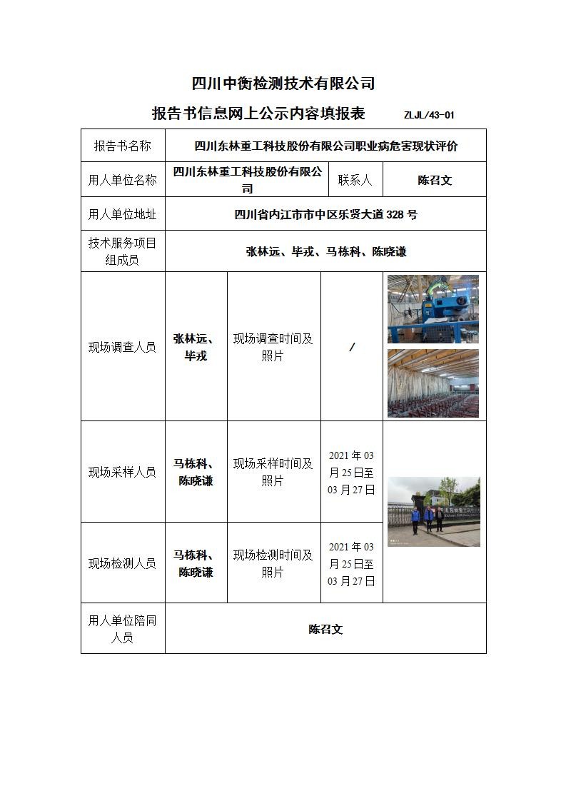 四川東林重工科技股份有限公司職業(yè)病危害現(xiàn)狀評價