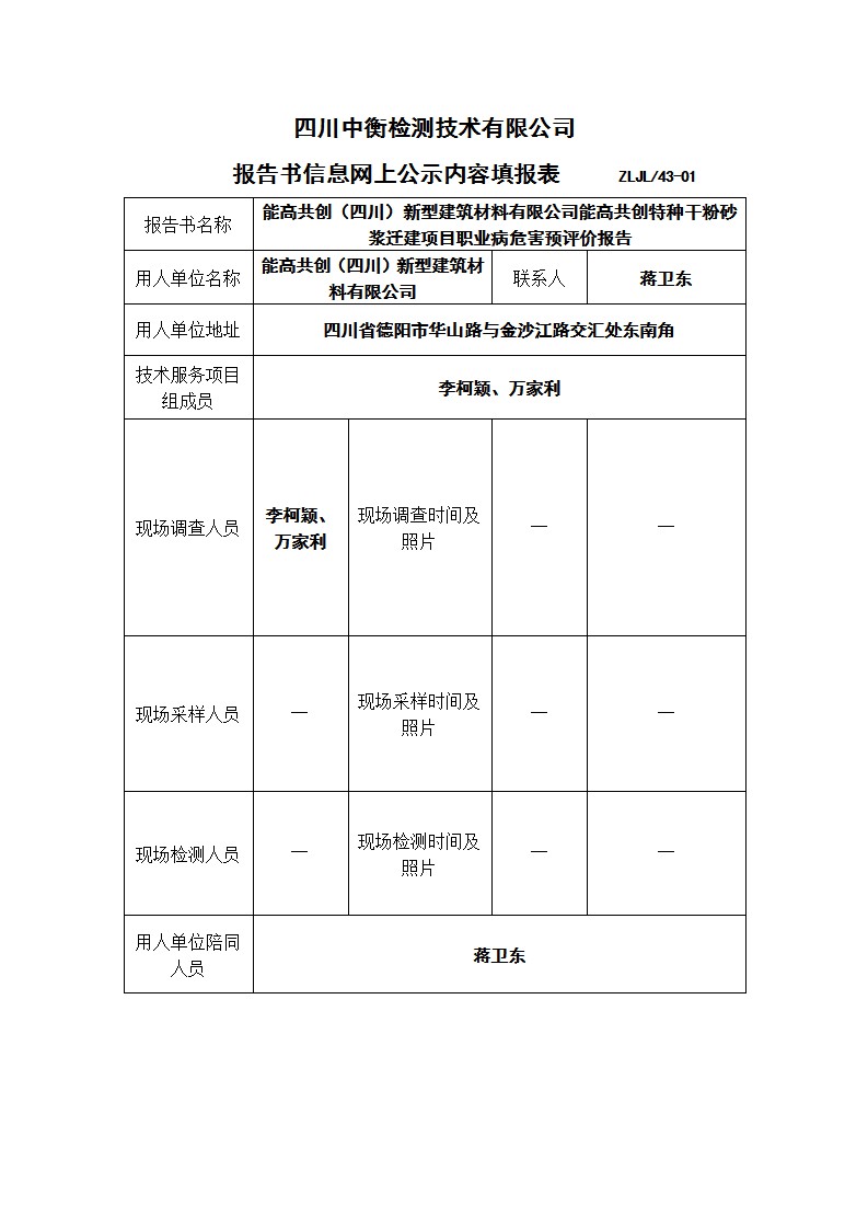 能高共創(chuàng)(四川)新型建筑材料有限公司能高共創(chuàng)特種干粉砂漿遷建項(xiàng)目職業(yè)病危害預(yù)評(píng)價(jià)報(bào)告