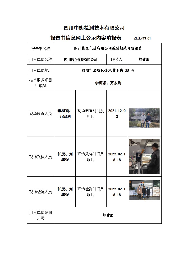 四川信立包裝有限公司控制效果評(píng)價(jià)報(bào)告