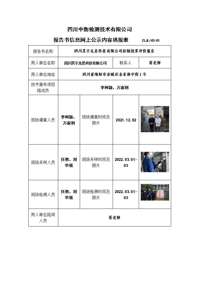 四川昊宇龍星科技有限公司控制效果評價報告