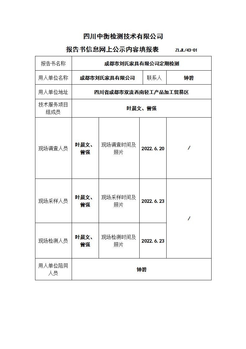 成都市劉氏家具有限公司職業(yè)病危害定期檢測