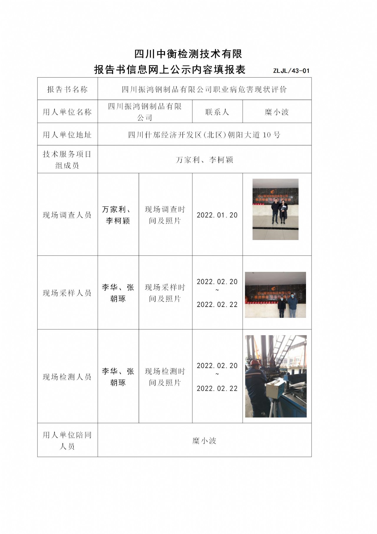 四川振鴻鋼制品有限公司職業(yè)病危害現(xiàn)狀評價