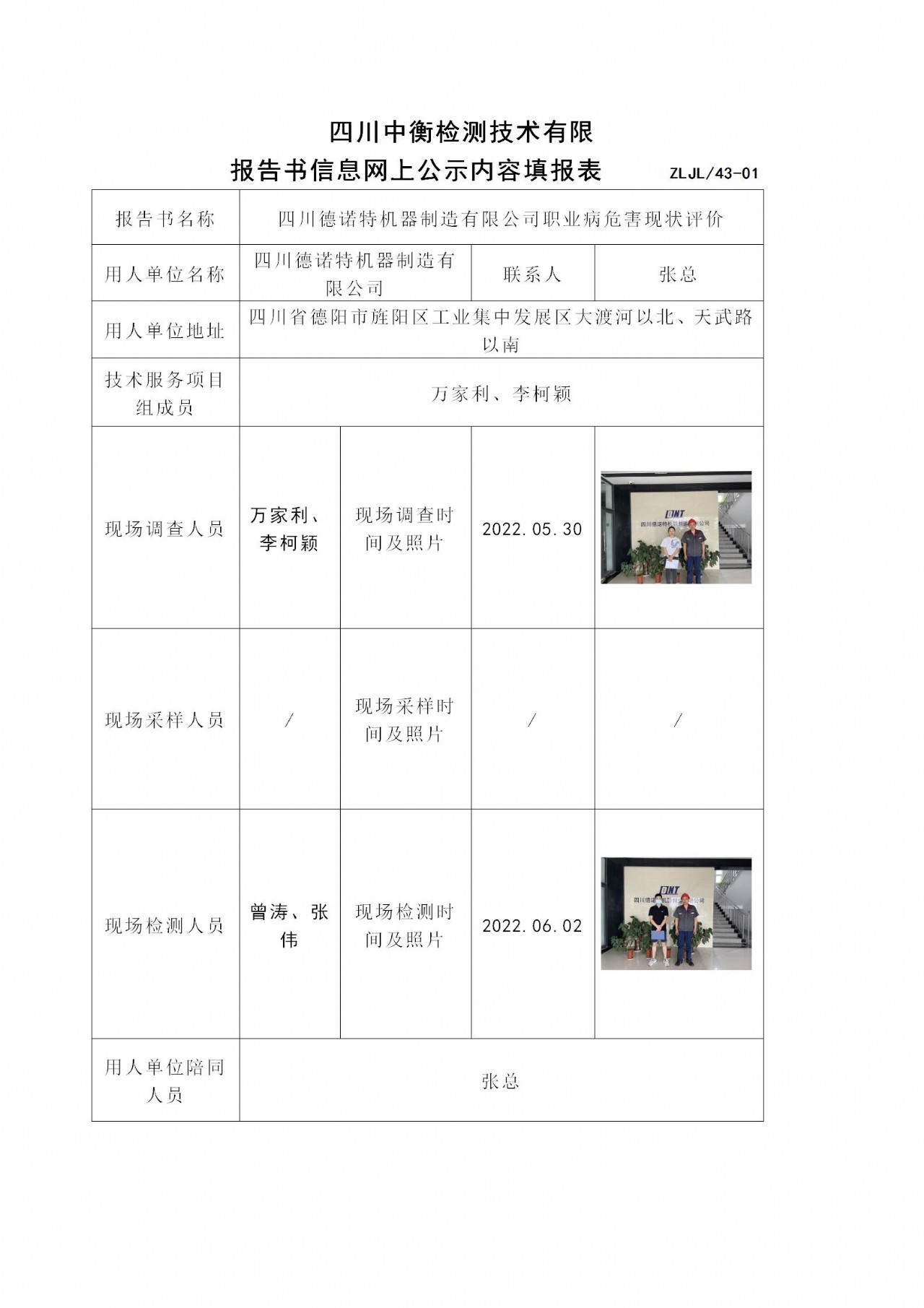 四川德諾特機(jī)器制造有限公司職業(yè)病危害現(xiàn)狀評價(jià)
