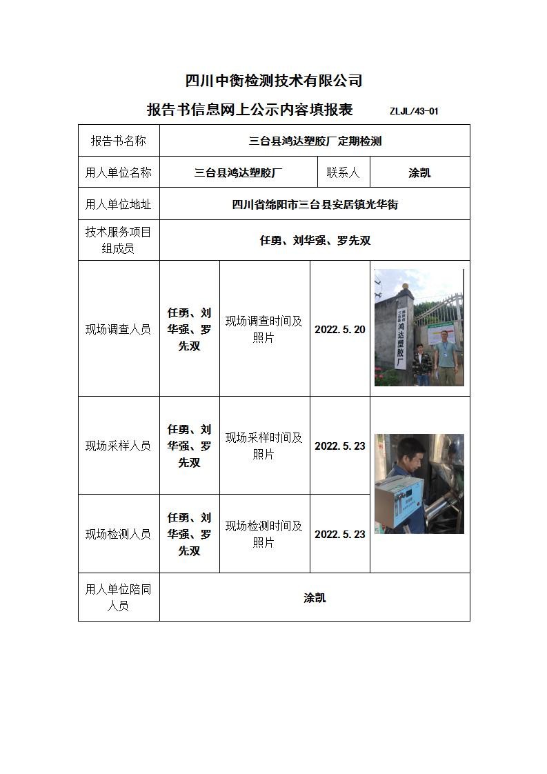 三臺縣鴻達(dá)塑膠廠職業(yè)病危害定期檢測