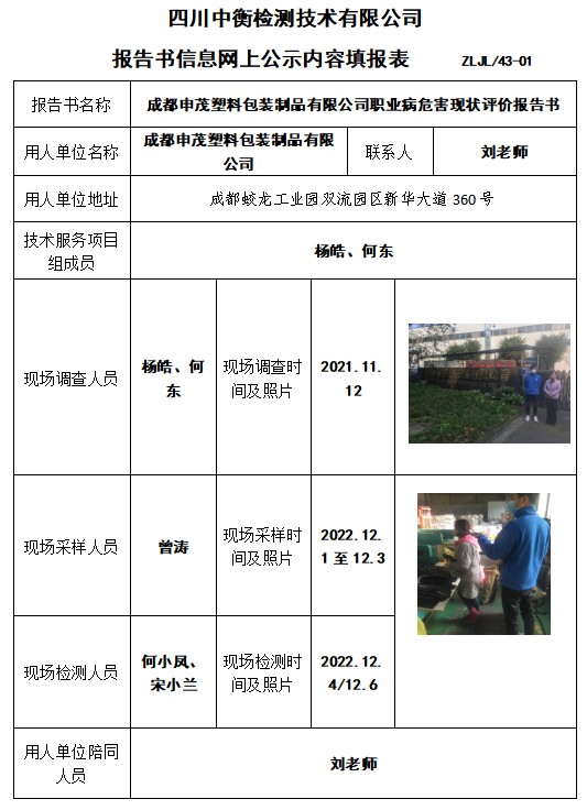 成都申茂塑料包裝制品有限公司職業(yè)病危害現(xiàn)狀評價
