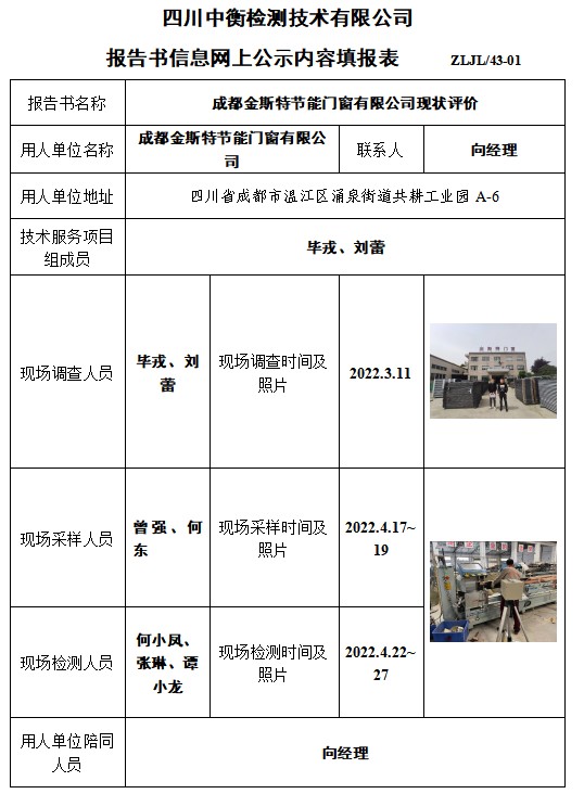 成都金斯特節(jié)能門窗有限公司現(xiàn)狀評價