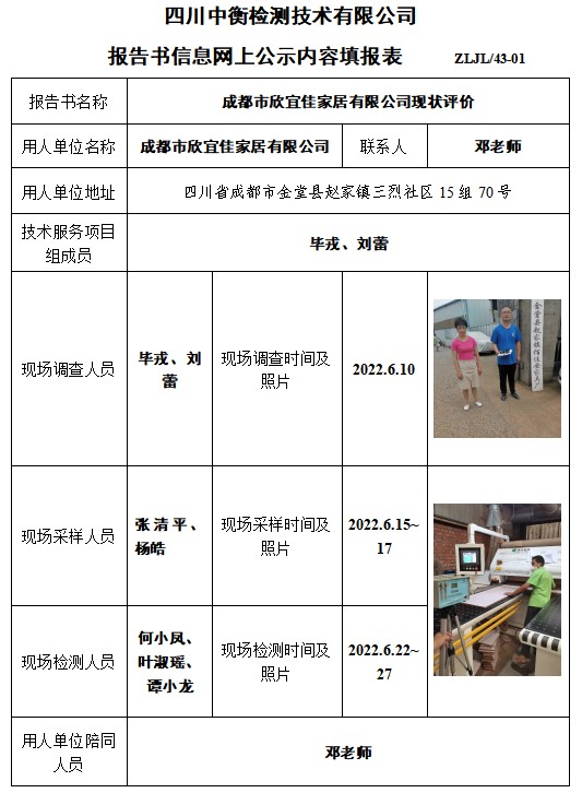 成都市欣宜佳家居有限公司現(xiàn)狀評價(jià)