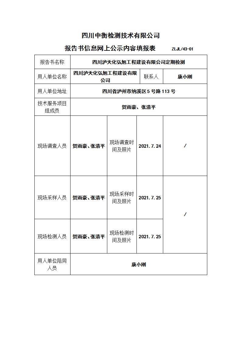 四川瀘天化弘旭工程建設(shè)有限公司職業(yè)病危害定期檢測