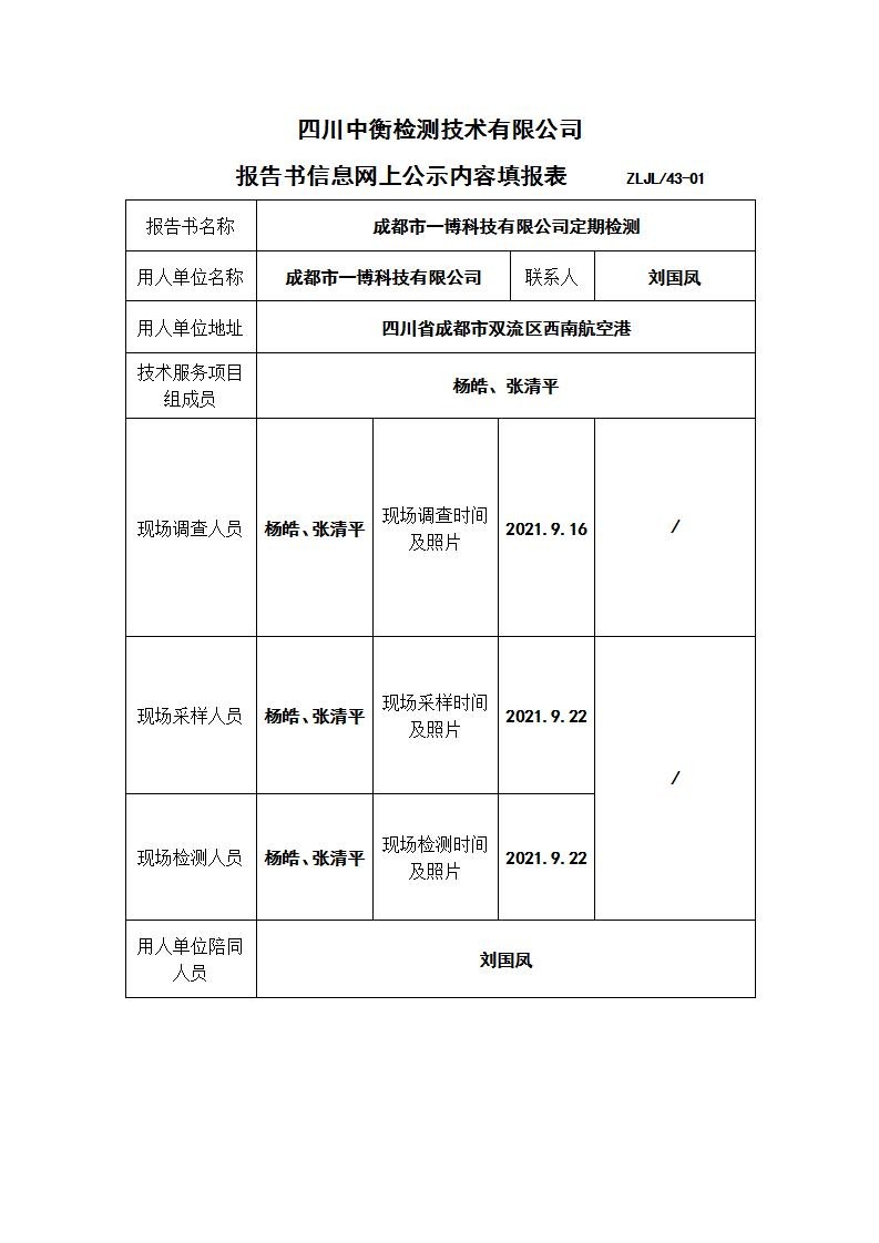 成都市一博科技有限公司職業(yè)病危害定期檢測