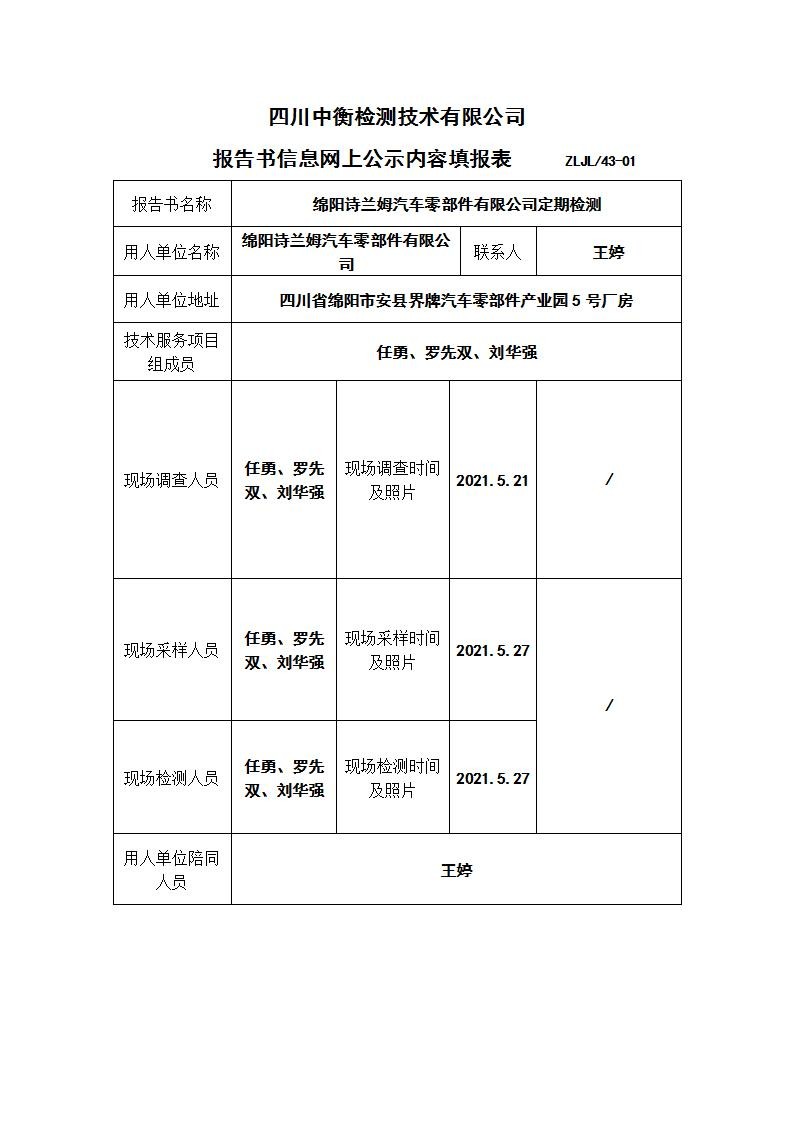 綿陽詩蘭姆汽車零部件有限公司職業(yè)病危害定期檢測