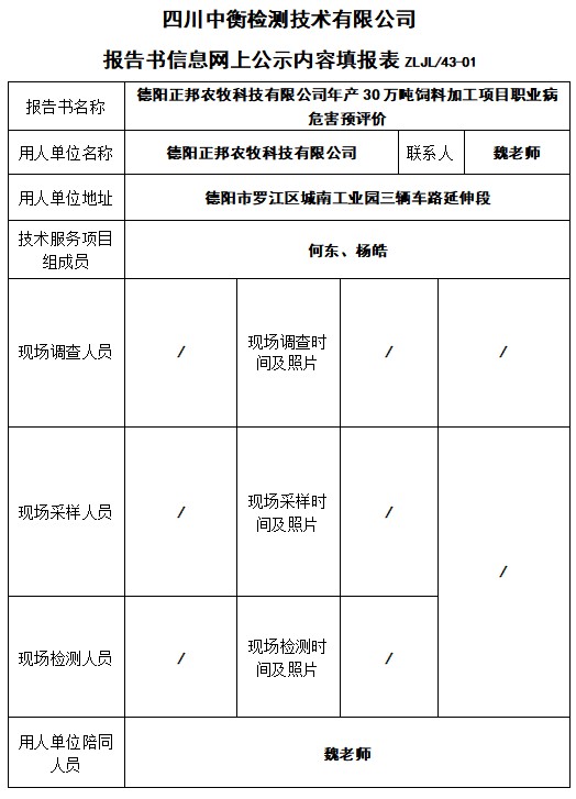 德陽正邦農(nóng)牧科技有限公司年產(chǎn)30萬噸飼料加工項目職業(yè)病危害預評價