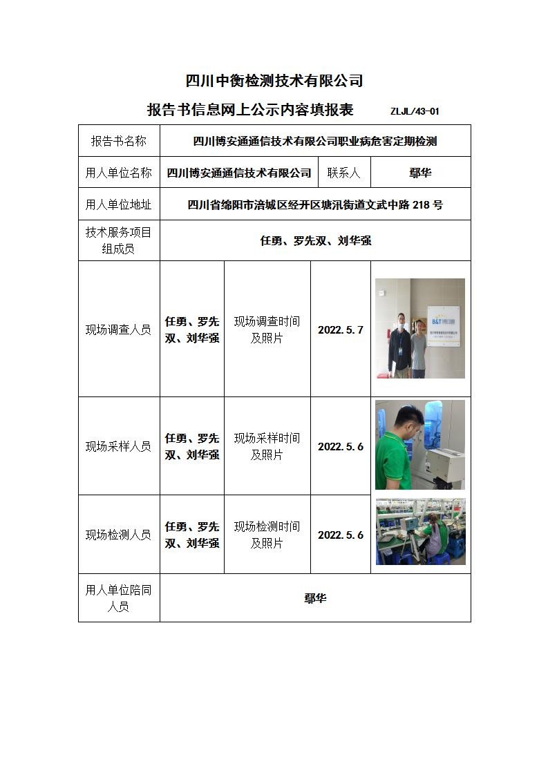 四川博安通通信技術(shù)有限公司職業(yè)病危害定期檢測(cè)