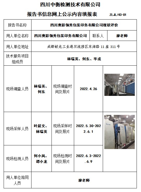 四川奧彩領秀包裝印務有限公司現(xiàn)狀評價