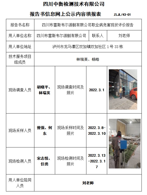 四川布雷斯韋爾游艇有限公司職業(yè)病危害現(xiàn)狀評(píng)價(jià)