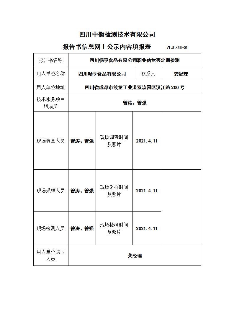 四川暢享食品有限公司職業(yè)病危害定期檢測(cè)
