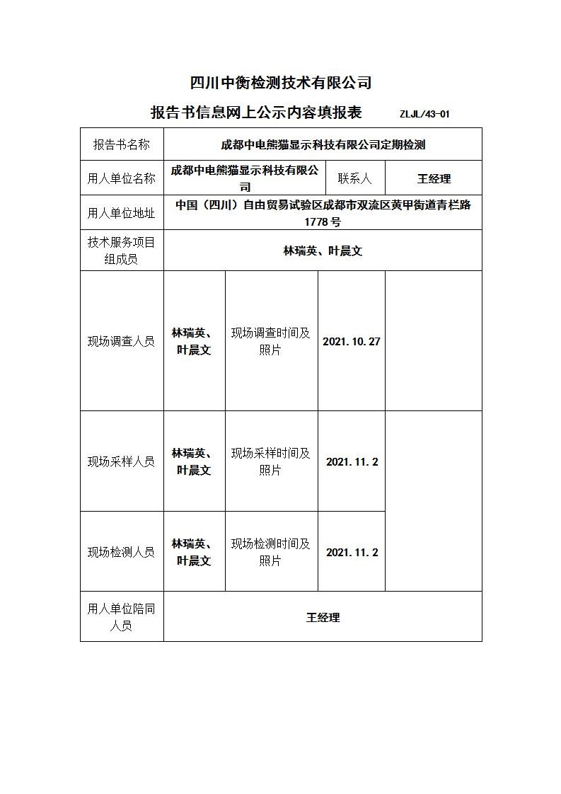 成都中電熊貓顯示科技有限公司職業(yè)病危害定期檢測(cè)