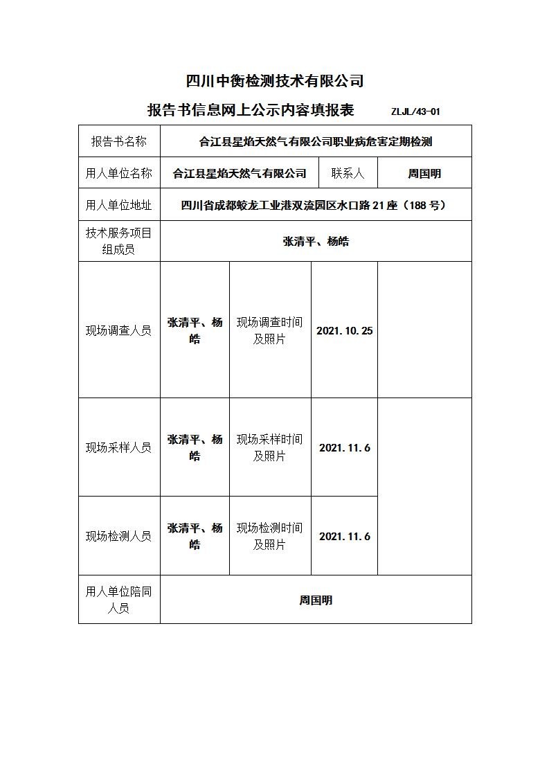 合江縣星焰天然氣有限公司職業(yè)病危害定期檢測(cè)