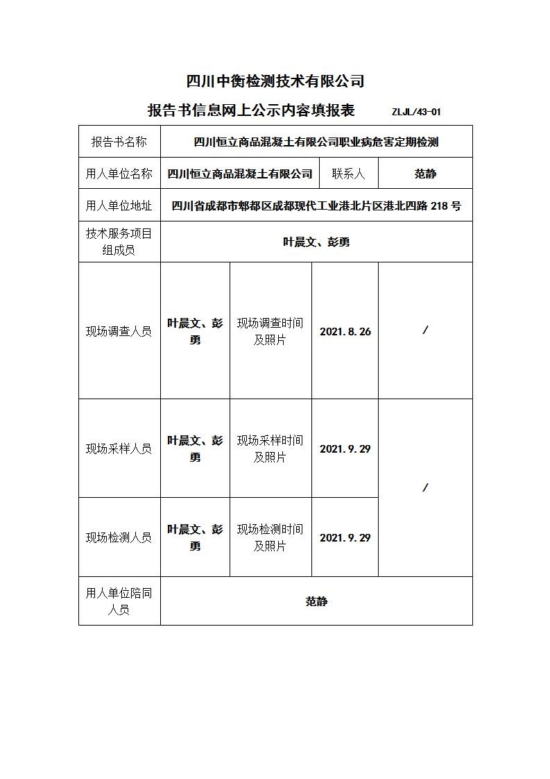 四川恒立商品混凝土有限公司職業(yè)病危害定期檢測
