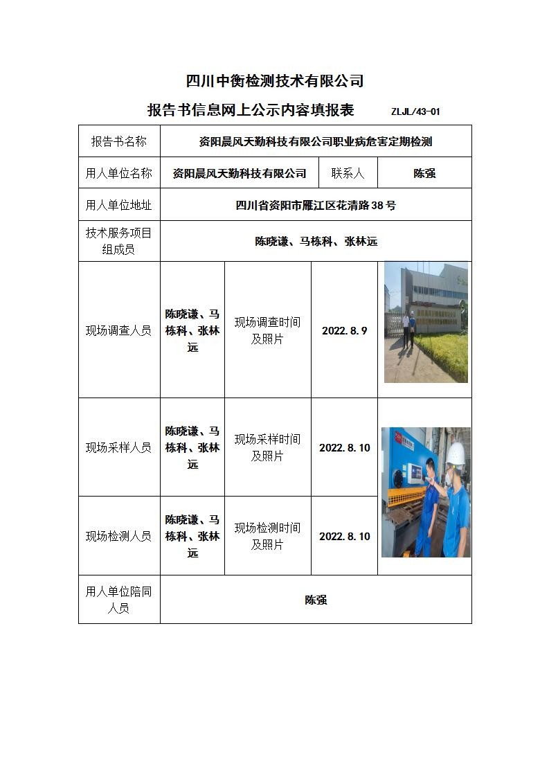 資陽晨風(fēng)天勤科技有限公司職業(yè)病危害定期檢測