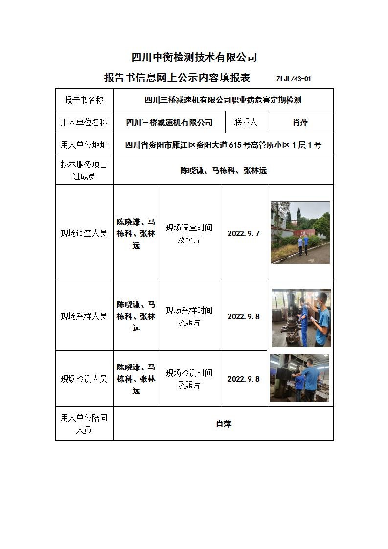 四川三橋減速機有限公司職業(yè)病危害定期檢測