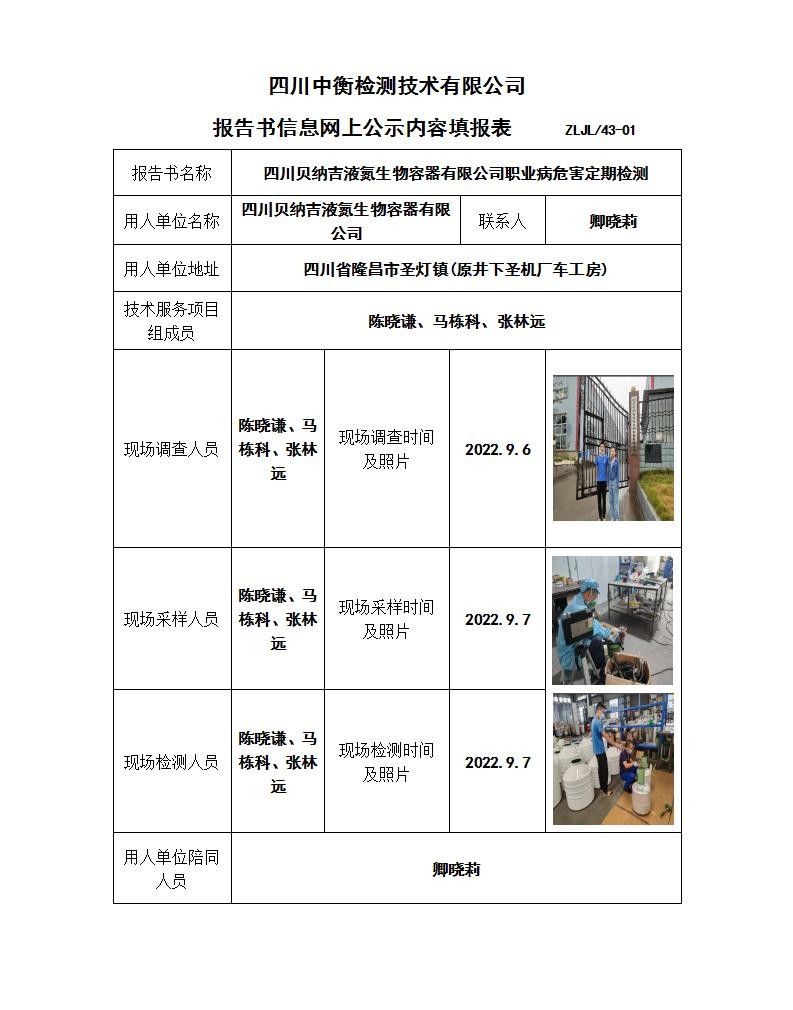 四川貝納吉液氮生物容器有限公司職業(yè)病危害定期檢測(cè)