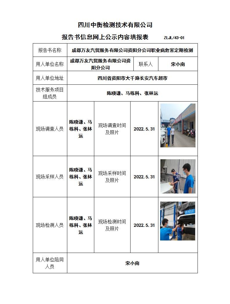 成都萬友汽貿(mào)服務(wù)有限公司資陽分公司職業(yè)病危害定期檢測(cè)