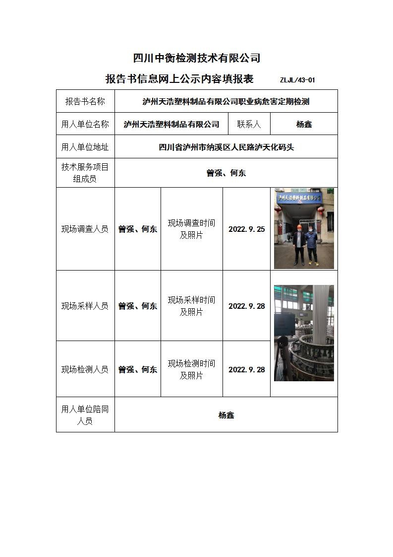 瀘州天浩塑料制品有限公司職業(yè)病危害定期檢測