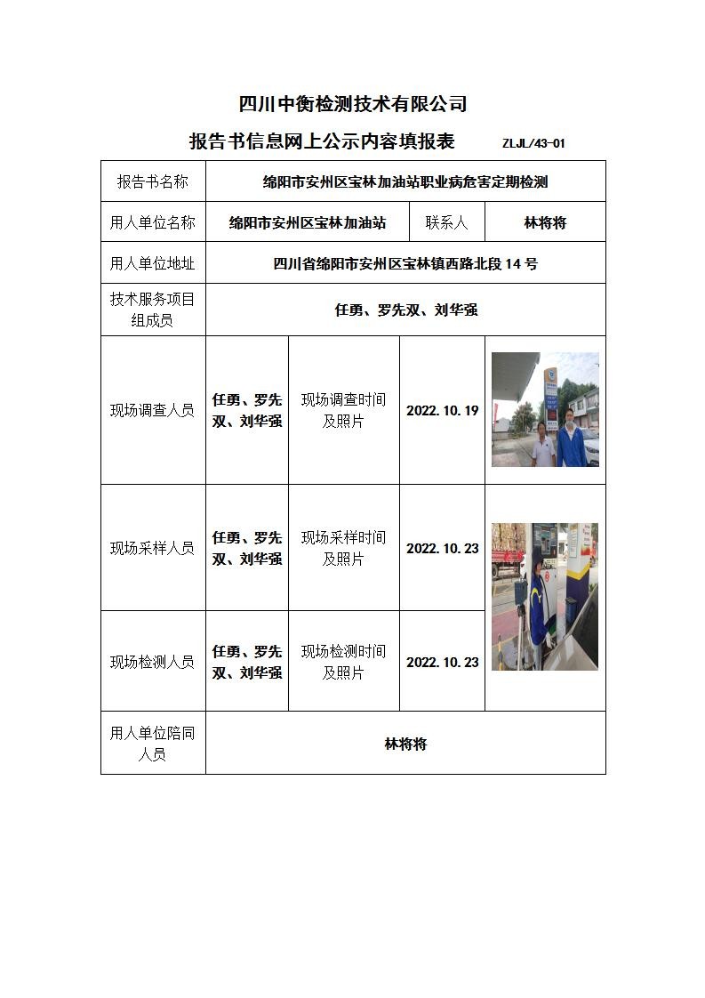 綿陽市安州區(qū)寶林加油站職業(yè)病危害定期檢測