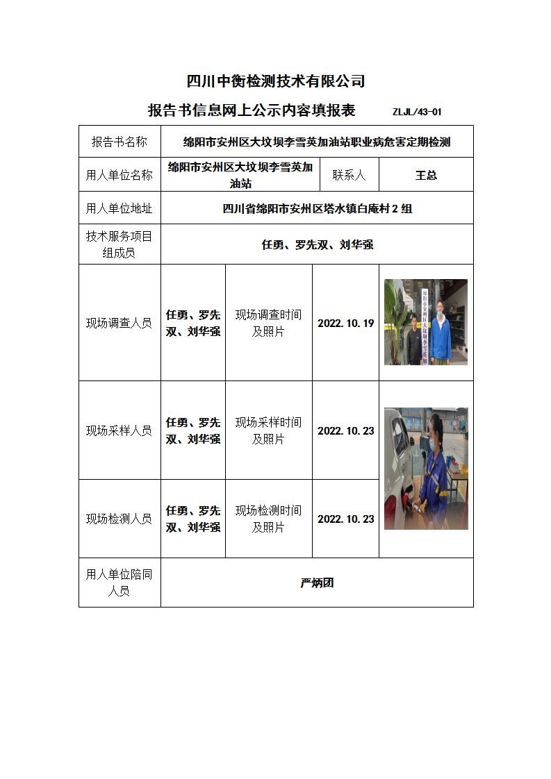 綿陽市安州區(qū)大墳壩李雪英加油站職業(yè)病危害定期檢測