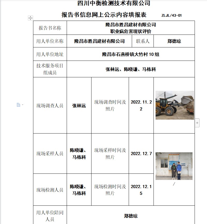 隆昌市勝昌建材有限公司 職業(yè)病危害現(xiàn)狀評(píng)價(jià)
